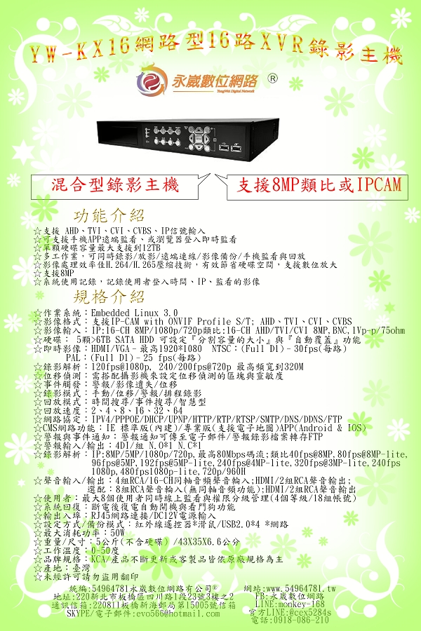 YW-NK800B/D-16路NVR網路錄影主機(5MP)